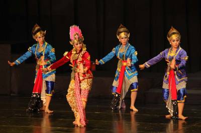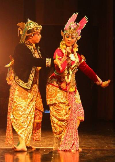 Ketiga tipe karakter tersebut dipentaskan dalam dua tarian, yaitu peperangan antara Dewi Sudarawerti melawan Dewi Sirtupilaeli, dan peperangan antara Prabu Dirgamaruta melawan Raden Maktal.